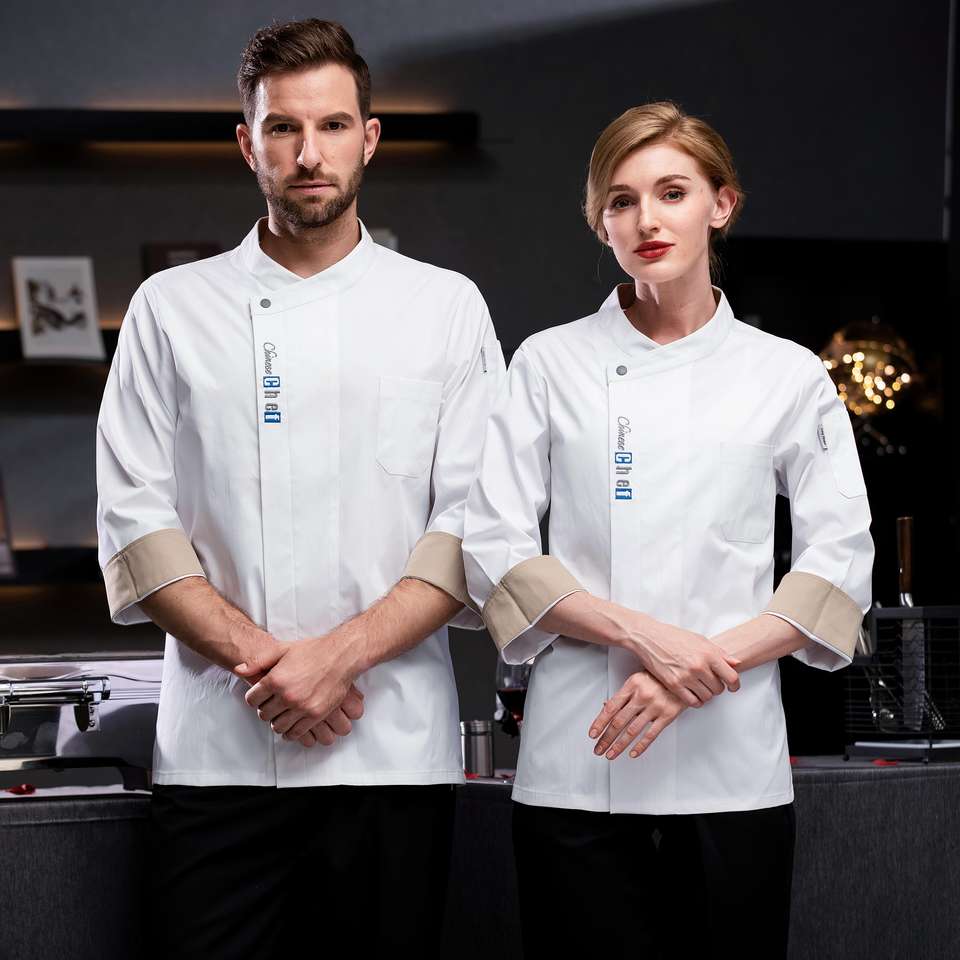 Conception simple un bouton personnalisé hôtel cuisine coton polyester vestes de chef restaurant chinois chef uniformes femmes