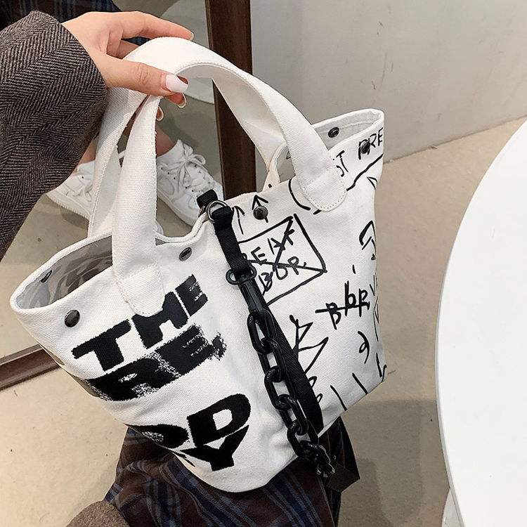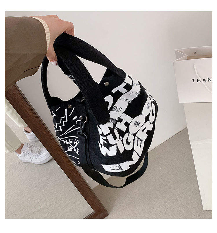 Sac à main en toile décontracté à grand graffiti personnalisé au design simple, nouveau sac à main en toile noir et blanc à graffiti