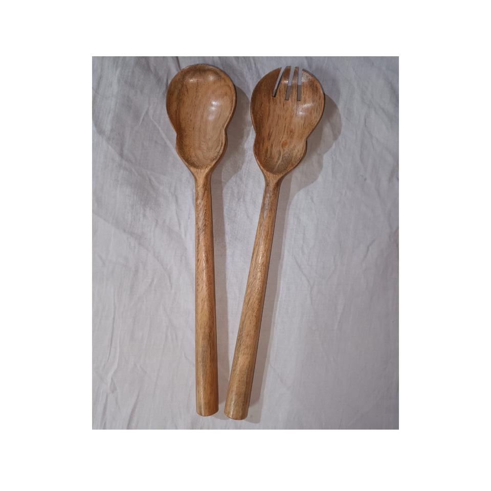 Ensembles de couverts de service à salade de conception simple de cuillère à salade en bois de mangue et ensembles de service de fourchette à salade avec couleur en bois naturel pour la maison