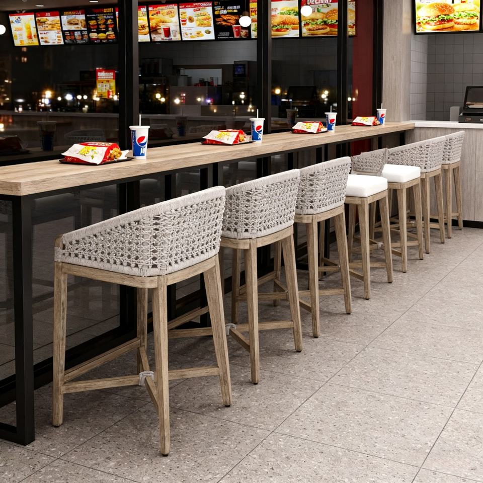 Nom du produit:Tabourets de bar rembourrés en bois massif et corde tressée pour cuisine, jardin et patio