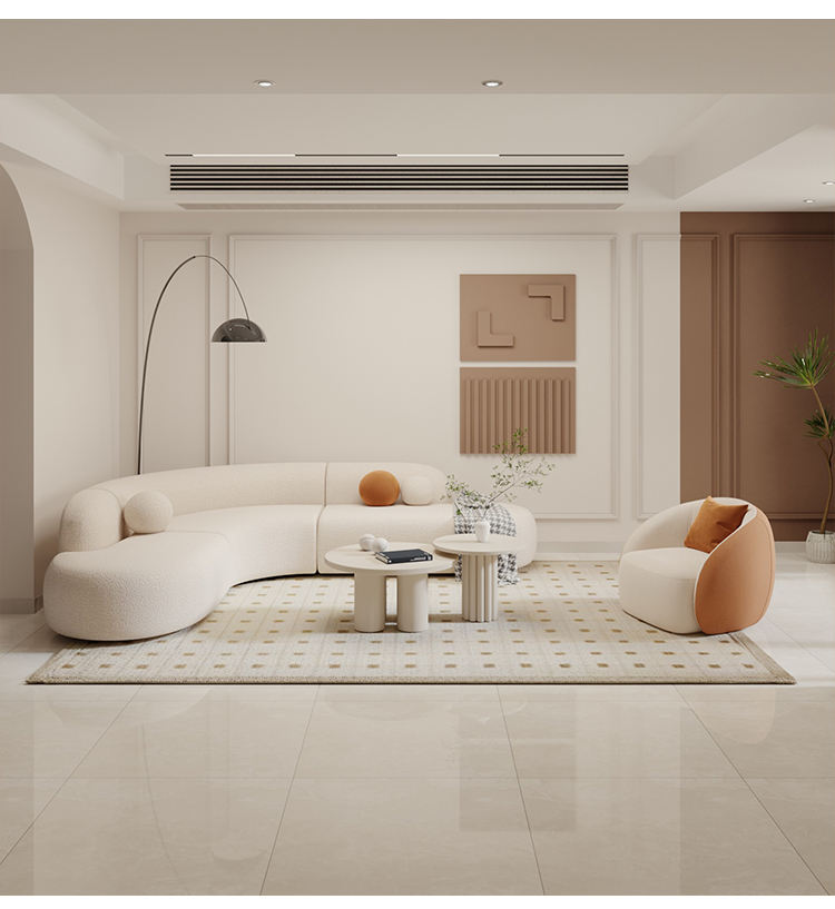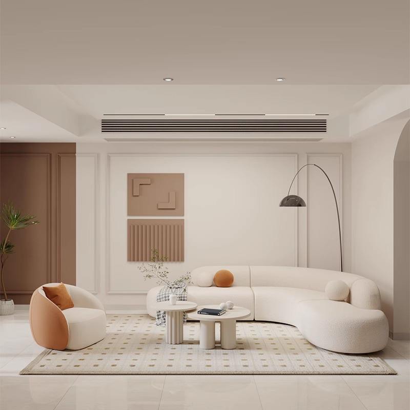 Ensemble de canapé d'angle en tissu crème simple et design pour hôtel, petit appartement, réception, salon de beauté, bureau de vente, zones de repos