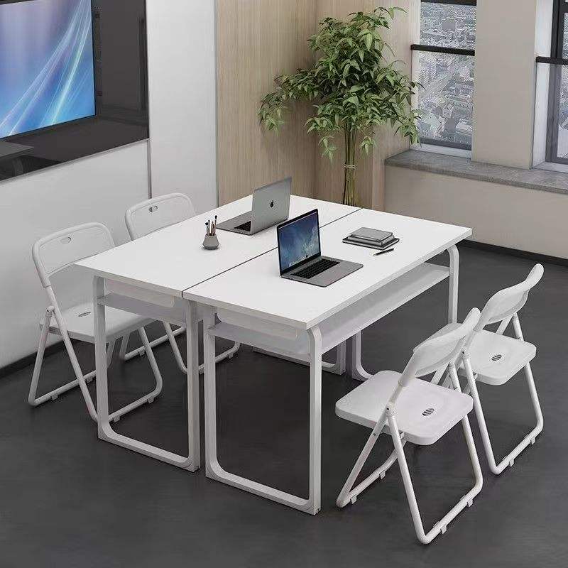 Bureau de bureau moderne simple et durable pour deux personnes avec rangement et design écologique pour les réunions de bureau et la formation du personnel