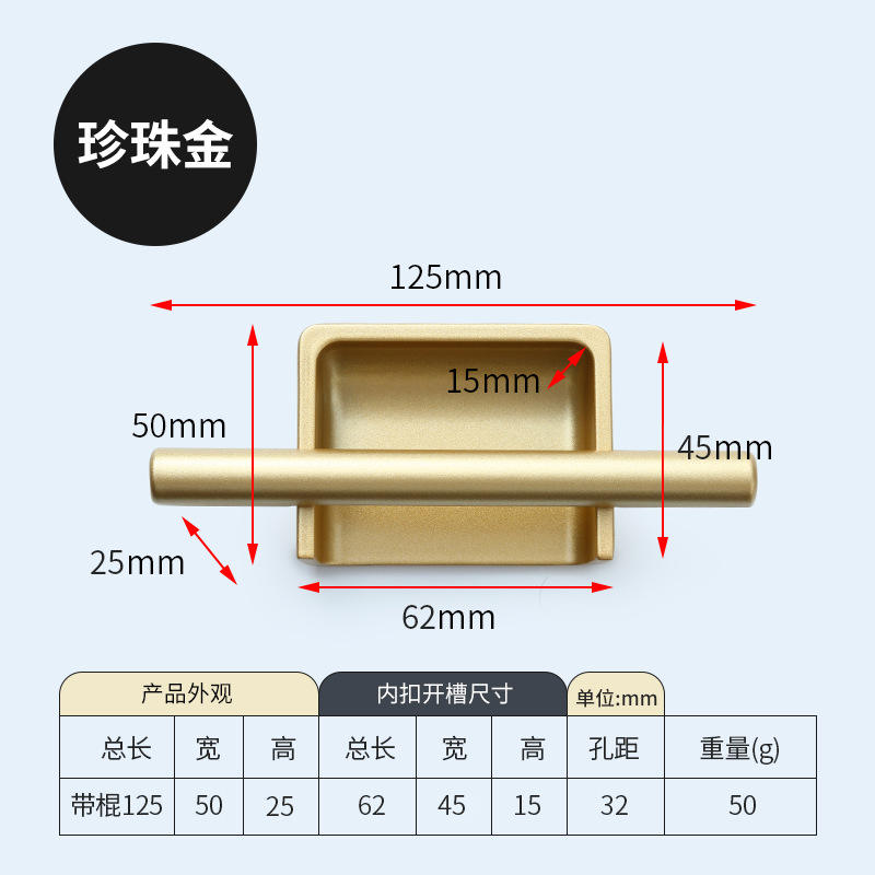 Poignée de traction dissimulée simple intégrée Design à barre carrée pour armoires à double porte Type de boucle invisible rainurée