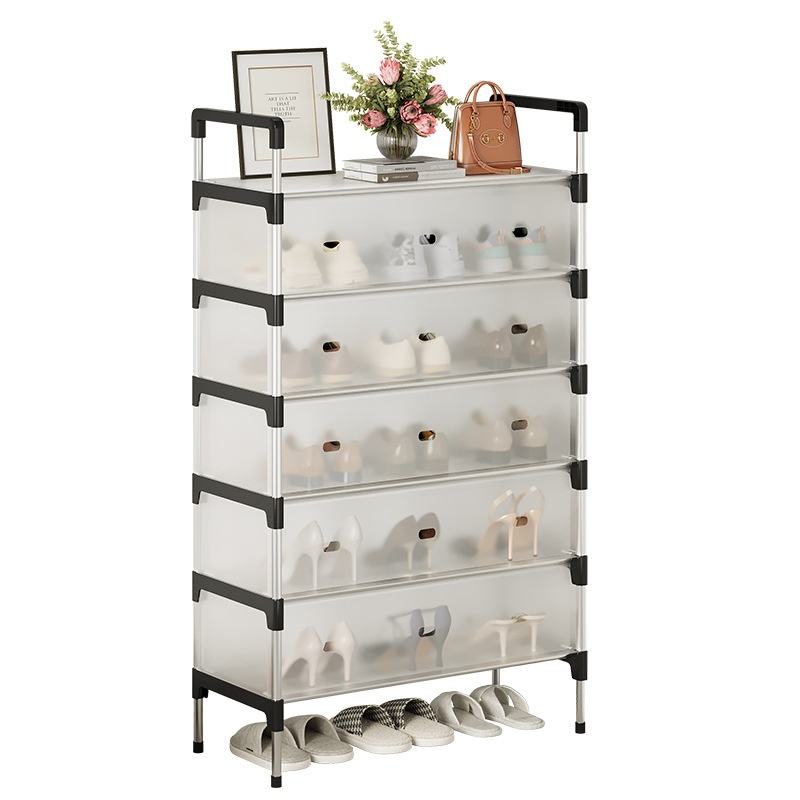 Meuble à chaussures simple d'entrée, multi-niveaux, anti-poussière, en métal, pour salon, couloir, dortoir étudiant, rangement
