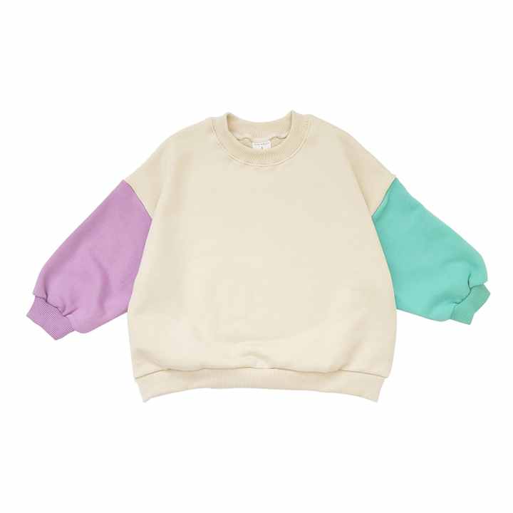 Sweat-shirt simple et tendance pour bébé, à manches longues, avec blocs de couleur, col rond, pull pour tout-petit