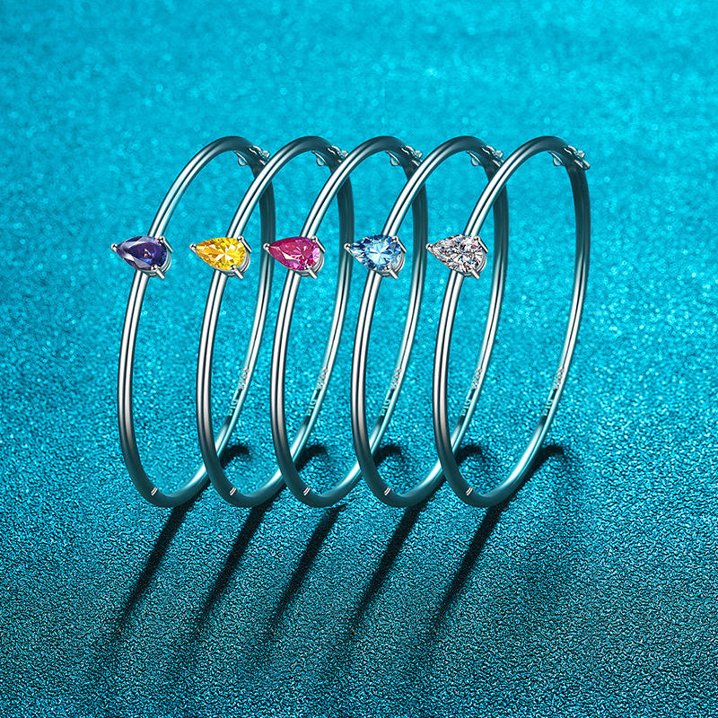 Bracelet simple et fin en argent sterling 925, bracelet épais uni, coupe de perle, 1CT VVS1 GRA, solitaire, moissanite colorée, bijoux pour femmes
