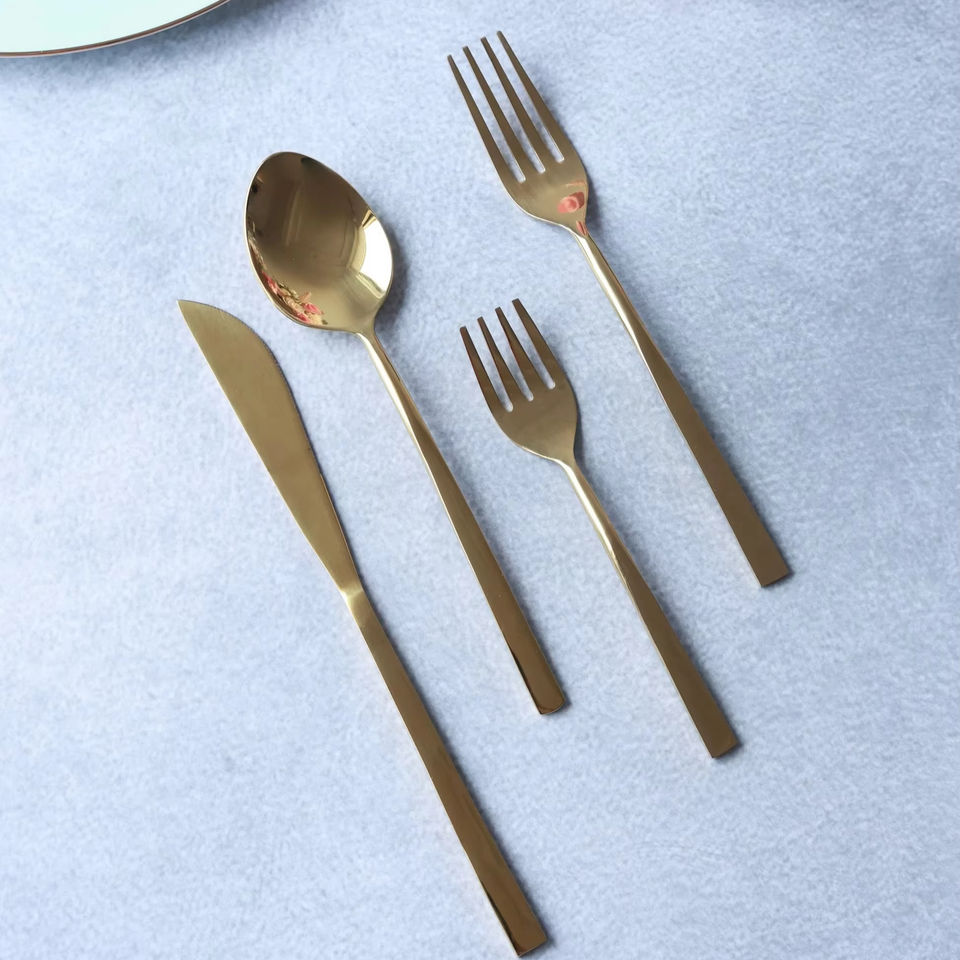 Ensemble de couverts en or fini simple couverts en acier inoxydable pour table à manger cuisine usage quotidien ustensiles de dîner minimalistes
