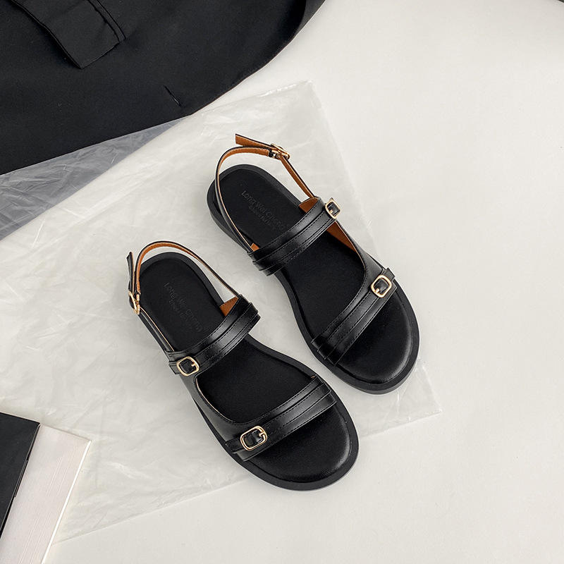 Sandales gladiateur simples à semelle plate, bout rond, boucle de ceinture, sandales ouvertes à bout ouvert
