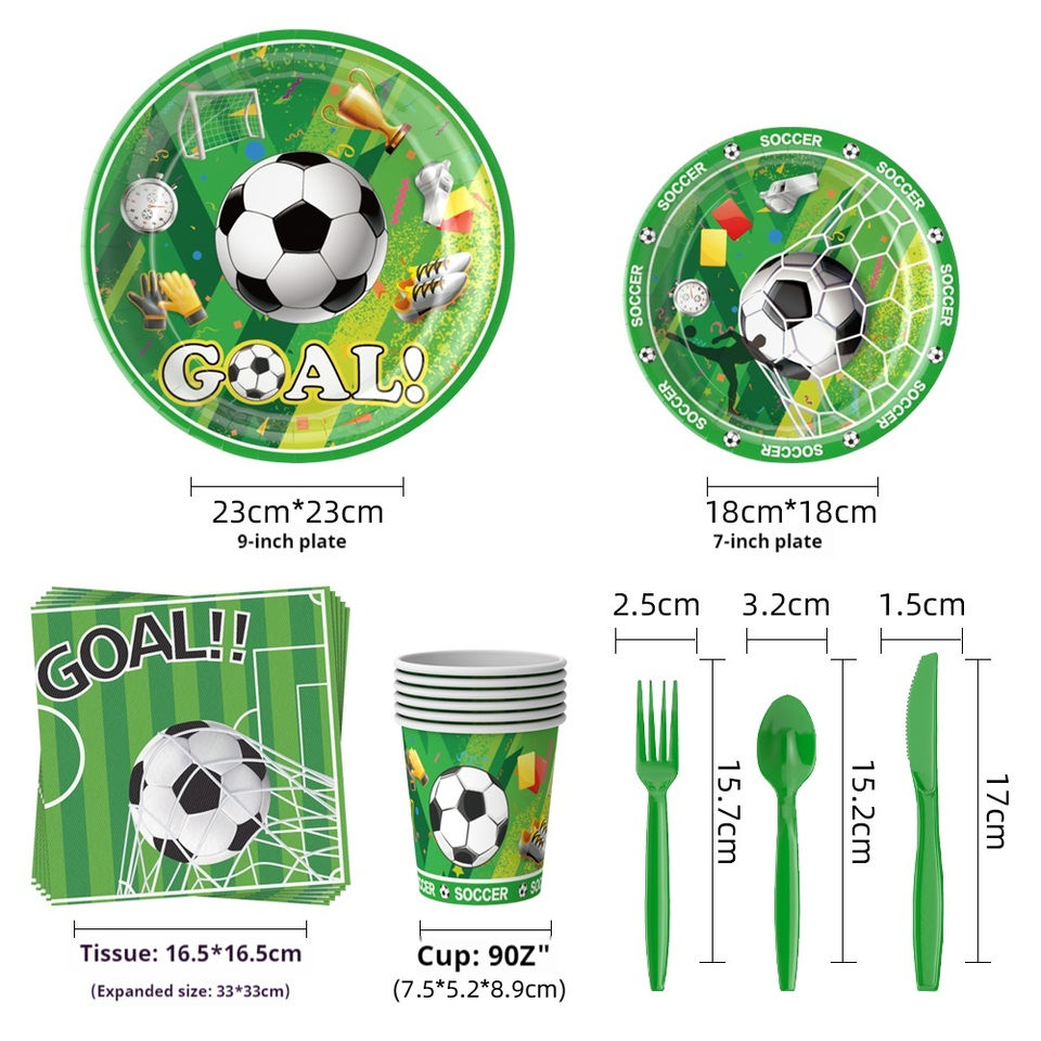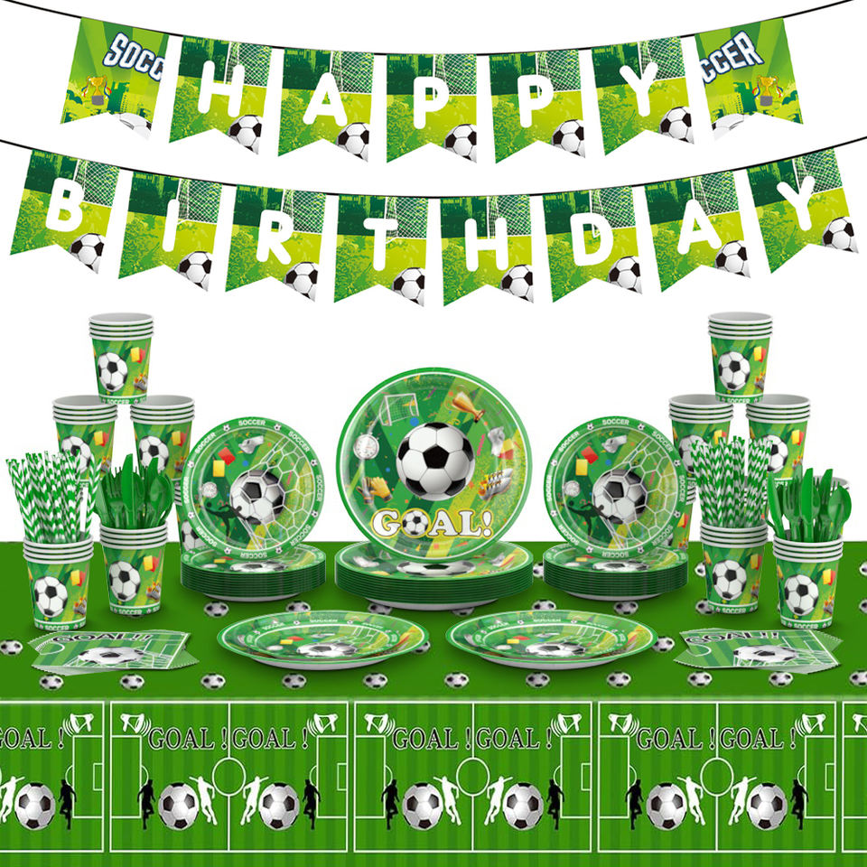 Ensembles de serviettes et de vaisselle jetables à thème football, décorations pour fêtes d'enfants, en stock