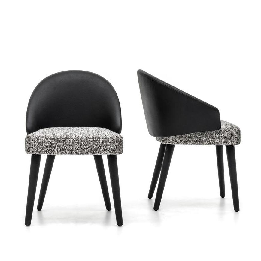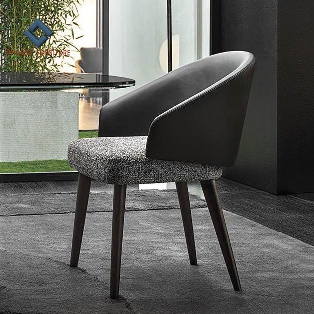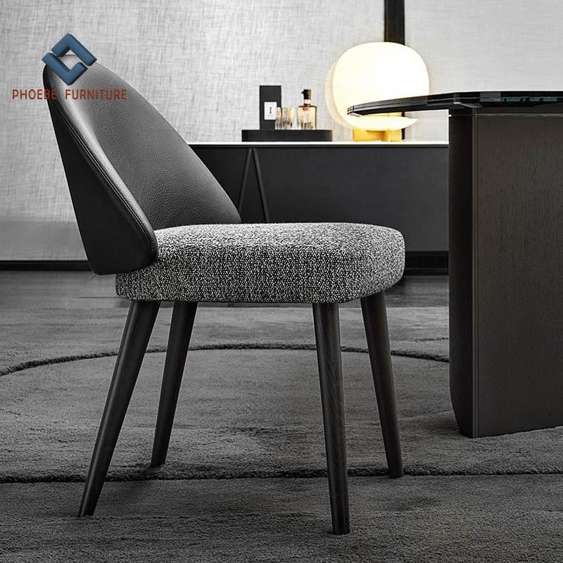 Chaise de salle à manger simple en cuir noir véritable avec coussin en tissu ensemble de salle à manger moderne