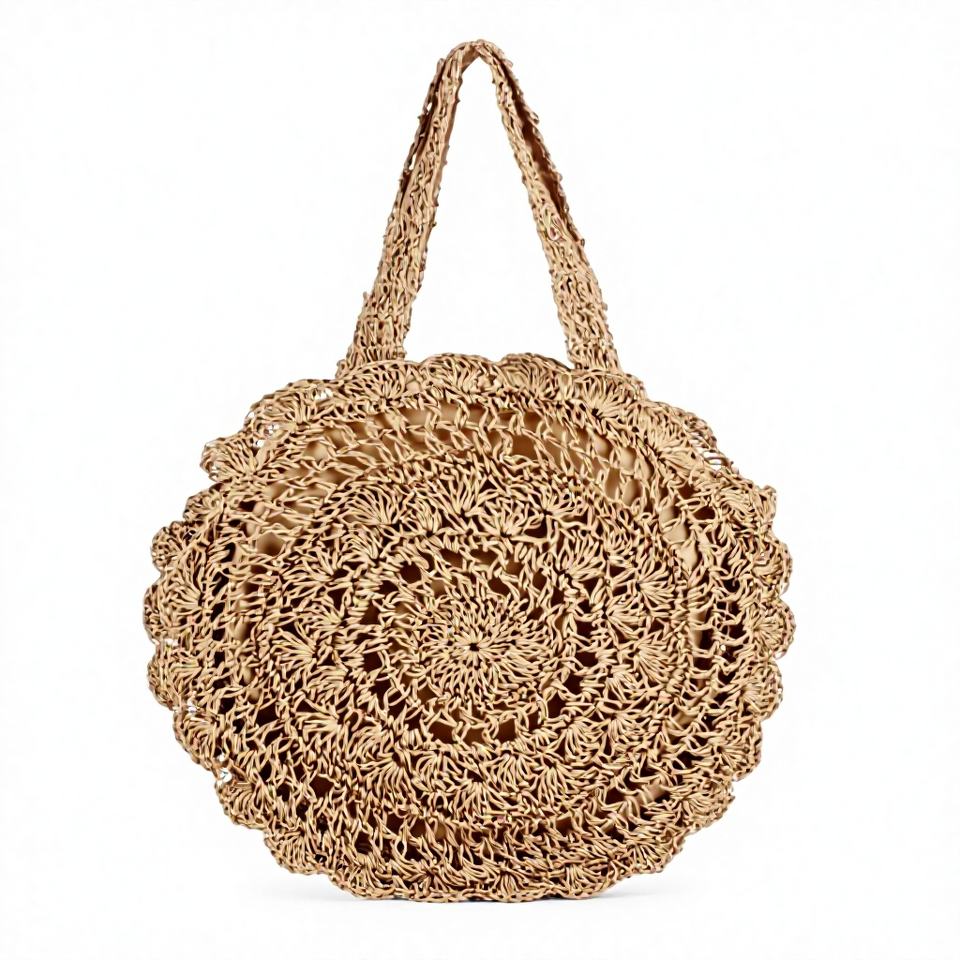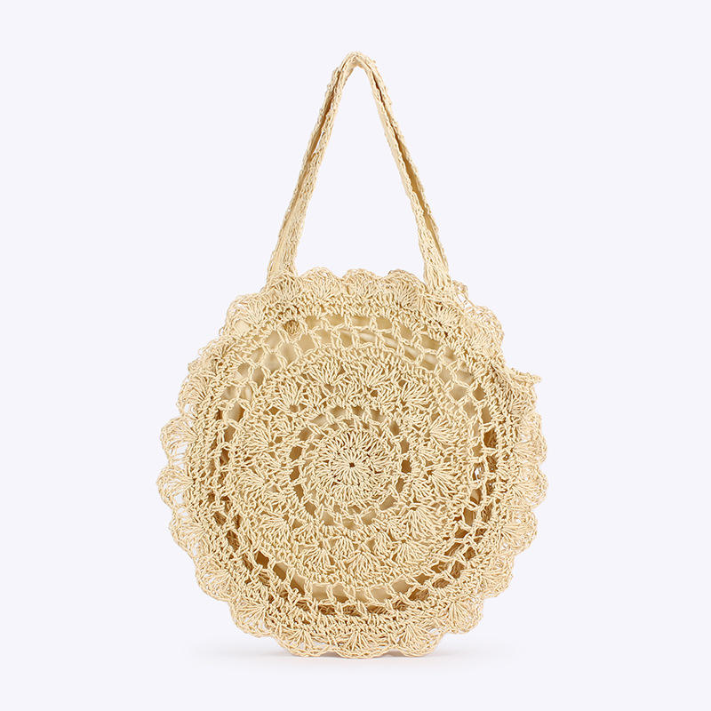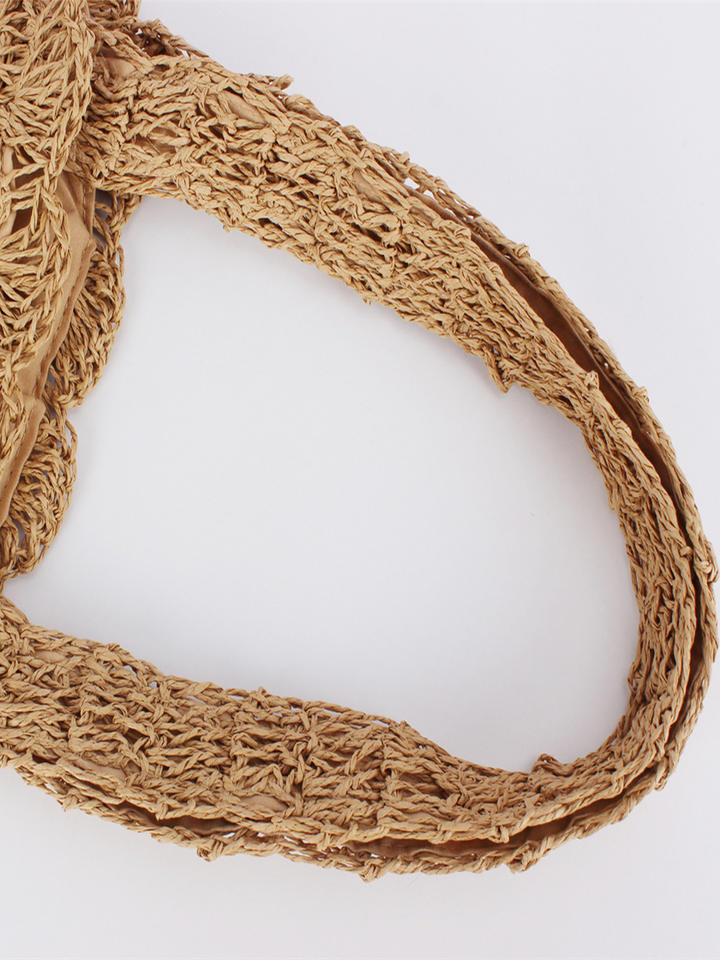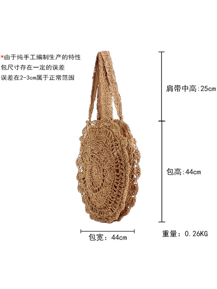 Sac de plage pour femme en corde de papier tressée, fait main au crochet, à épaule simple, avec deux fleurs, fermeture éclair en polyester, Tanjing