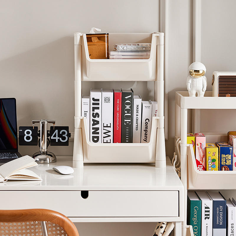Chariot de rangement simple pour la maison, 4 niveaux, organisateur de bureau mobile, type rectangulaire sur pied, nettoyage facile, multi-usage, rotatif