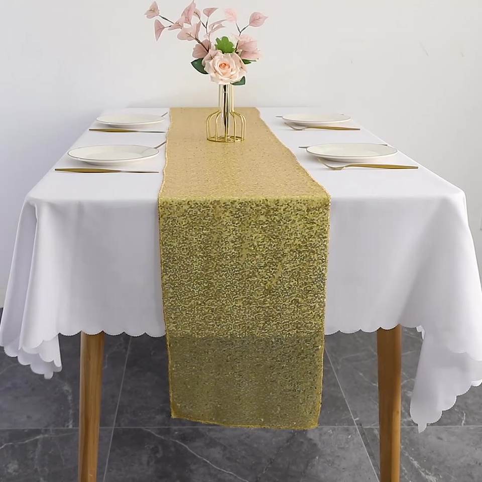 Nappe ronde simple de style nordique pour fête de mariage, chemin de table de Noël en sequins dorés et rouges