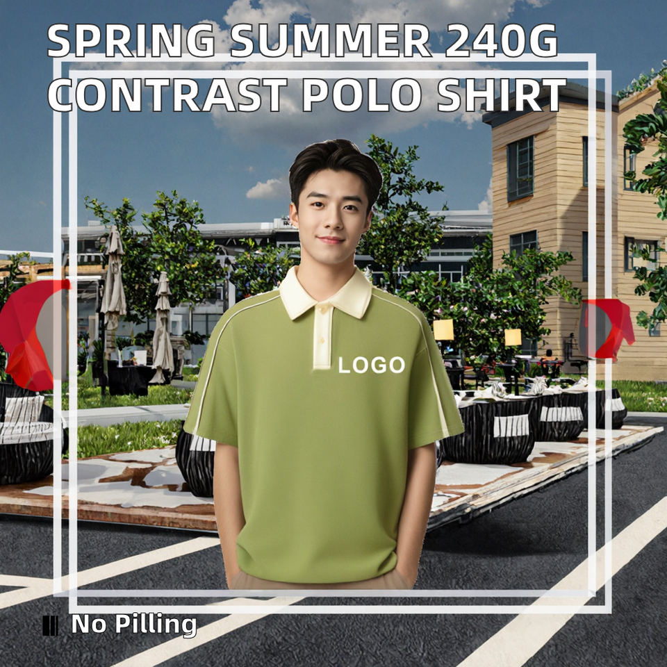 Simple Joker 240 Grams Contrast Shoulder Lapel for Shirt Spring Summer Collection Solid Knitted Anti-Pilling Short 100% Cotton