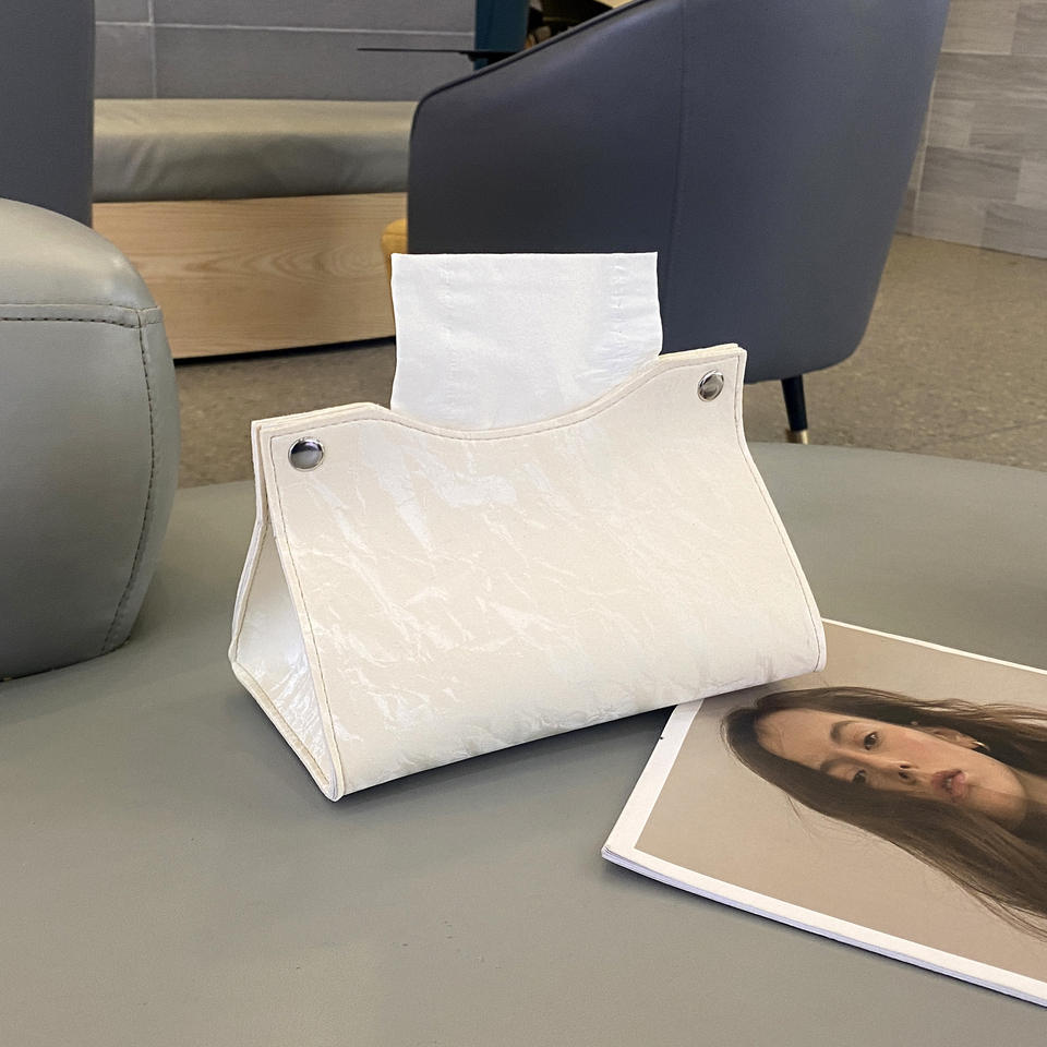 Boîte à mouchoirs en cuir simple, blanche, à bouche ronde, imperméable, polyvalente, pour salon, table basse, salle de bain, rangement pratique