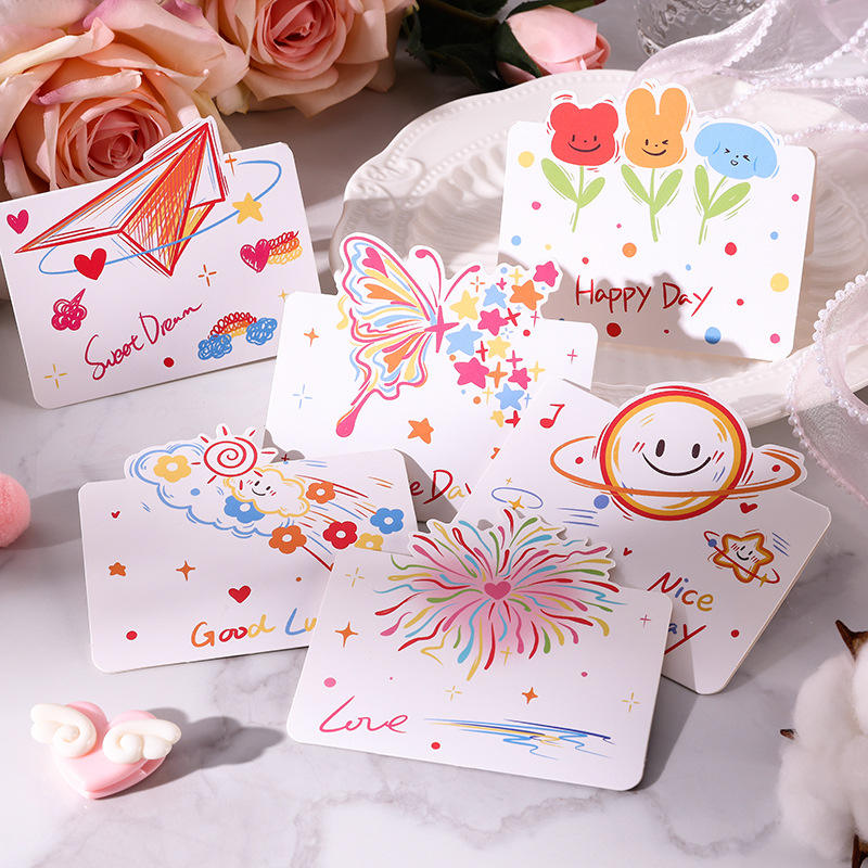 Carte de vœux écologique à motif de dessin au trait simple pour le Festival Qixi, la Saint-Valentin, la Fête des Mères, Noël, les anniversaires et les événements liés à la pâtisserie