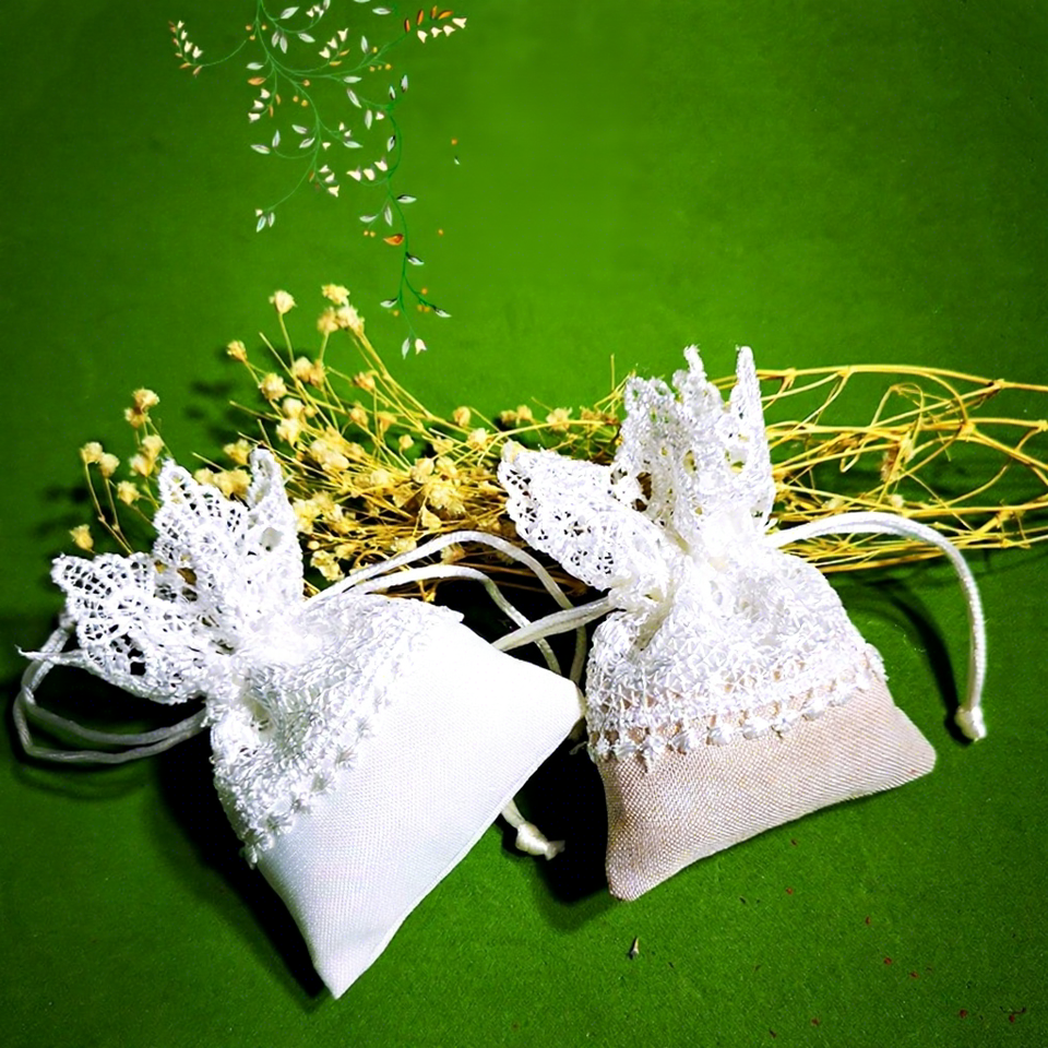 Sac cadeau simple en lin et dentelle, pochette brodée à cordon, logo personnalisé, pour bijoux, Noël, anniversaire, bonbons, cosmétiques, rangement réutilisable