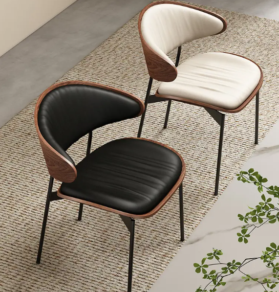 Chaise de salle à manger de restaurant en bois patchwork nordique simple en tissu noyer pu