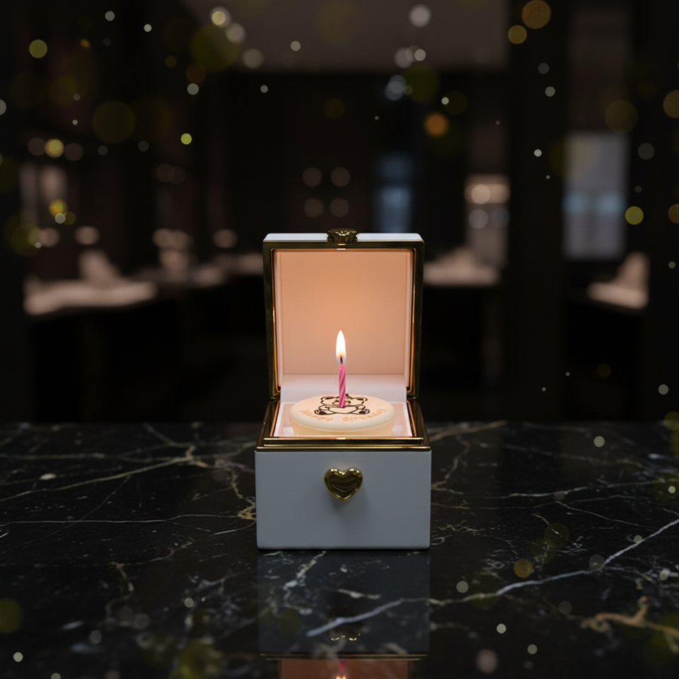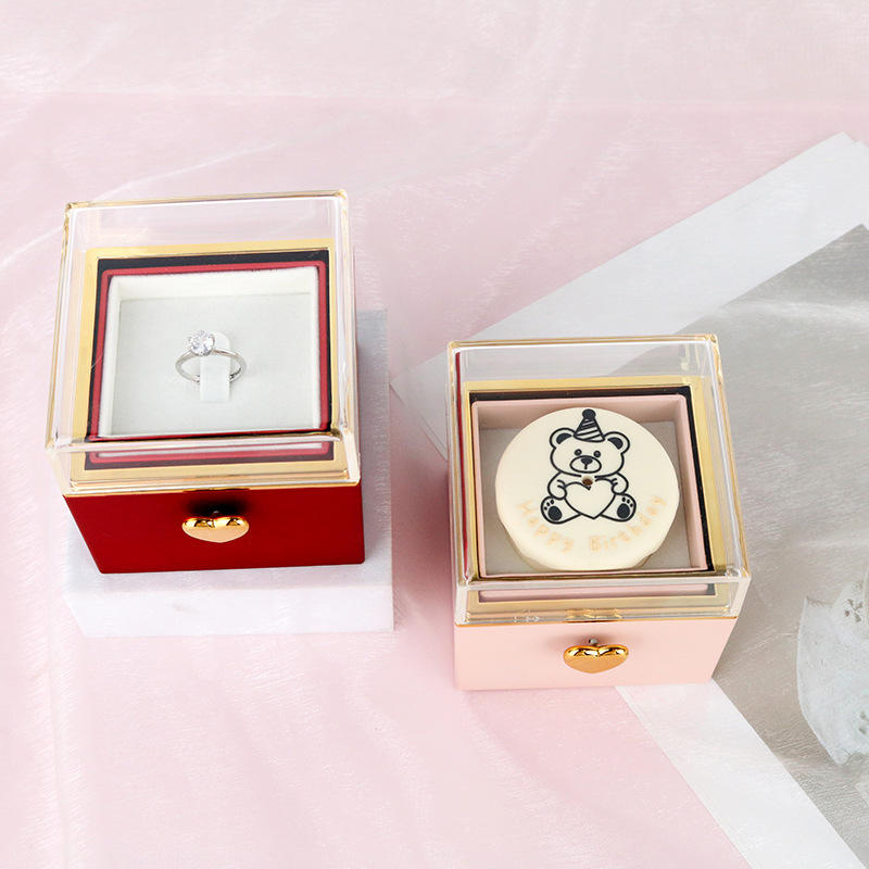 Coffret Cadeau Luxe Simple Ours Gâteau et Snacks Saint-Valentin Portable Fermeture Magnétique Carré Bijoux Pendentif Collier Bague UV