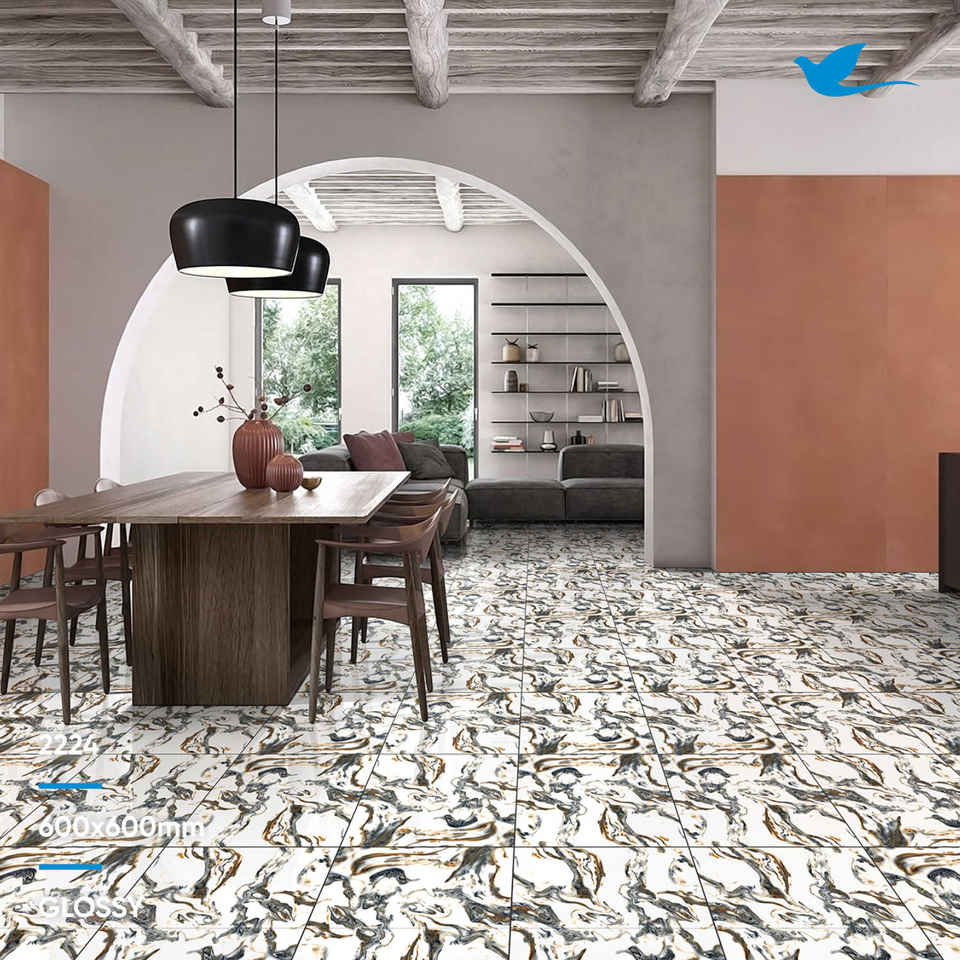 Carreaux de mur et de sol en porcelaine à motifs de marbre simples Surface émaillée brillante de 60mm Porcelaine d'hôtel antidérapante et polie