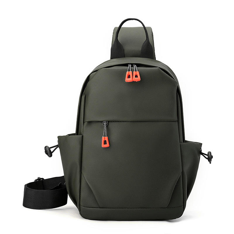 Sac de poitrine simple pour homme gris, noir, vert militaire, bleu foncé, couleur unie, matériau enduit avec port USB, collection Printemps 2025