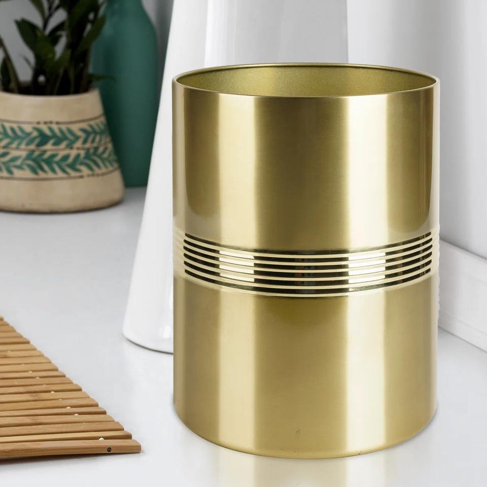 Poubelle simple en métal doré pour les chambres, le salon ou les événements – Poubelle décorative élégante pour l'intérieur, pour la maison ou le bureau, en provenance d'Inde