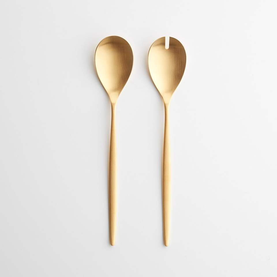 Serveur à salade en métal simple et minimaliste pour des intérieurs modernes et propres, offrant une fonctionnalité élégante et simple.