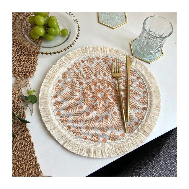 Tapis de Table en Coton Tissé Simple Couleur Menthe Coupe Brodé Design Western Décor Accessoire Tissé Isolation Chaude Cuisine Mariage