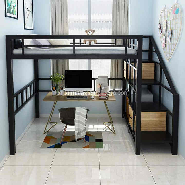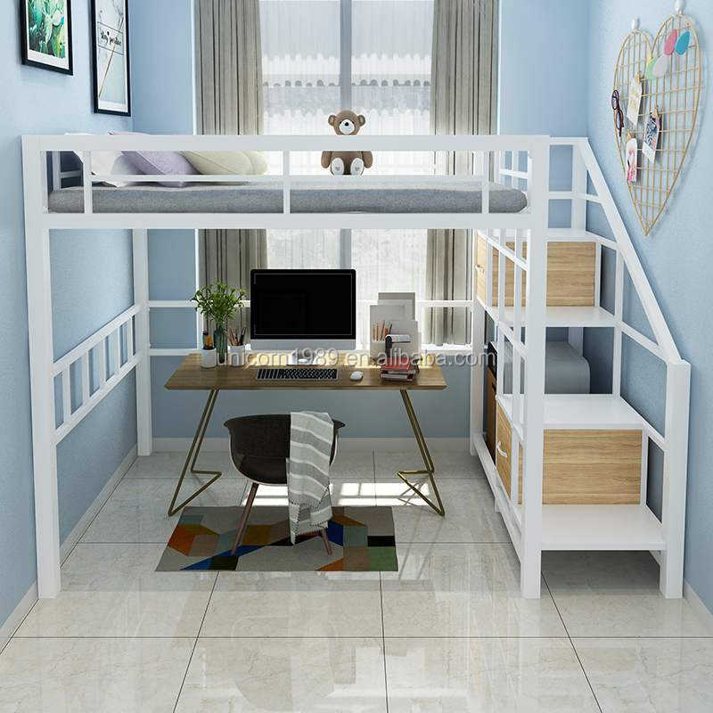 Nom du produit:Lit simple dortoir moderne en fer surélevé avec escalier
