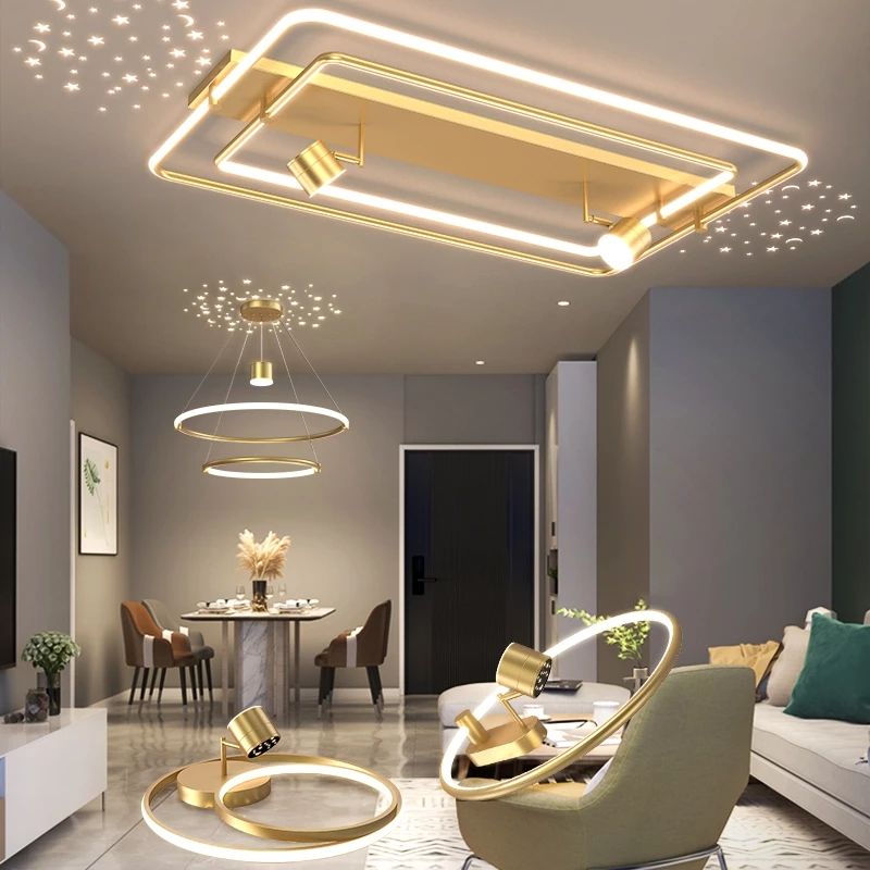 Lustre de salon moderne Simple, créatif ciel étoilé romantique chambre à coucher, décoration de plafond, lampe étoile lune cartographie LED lumière