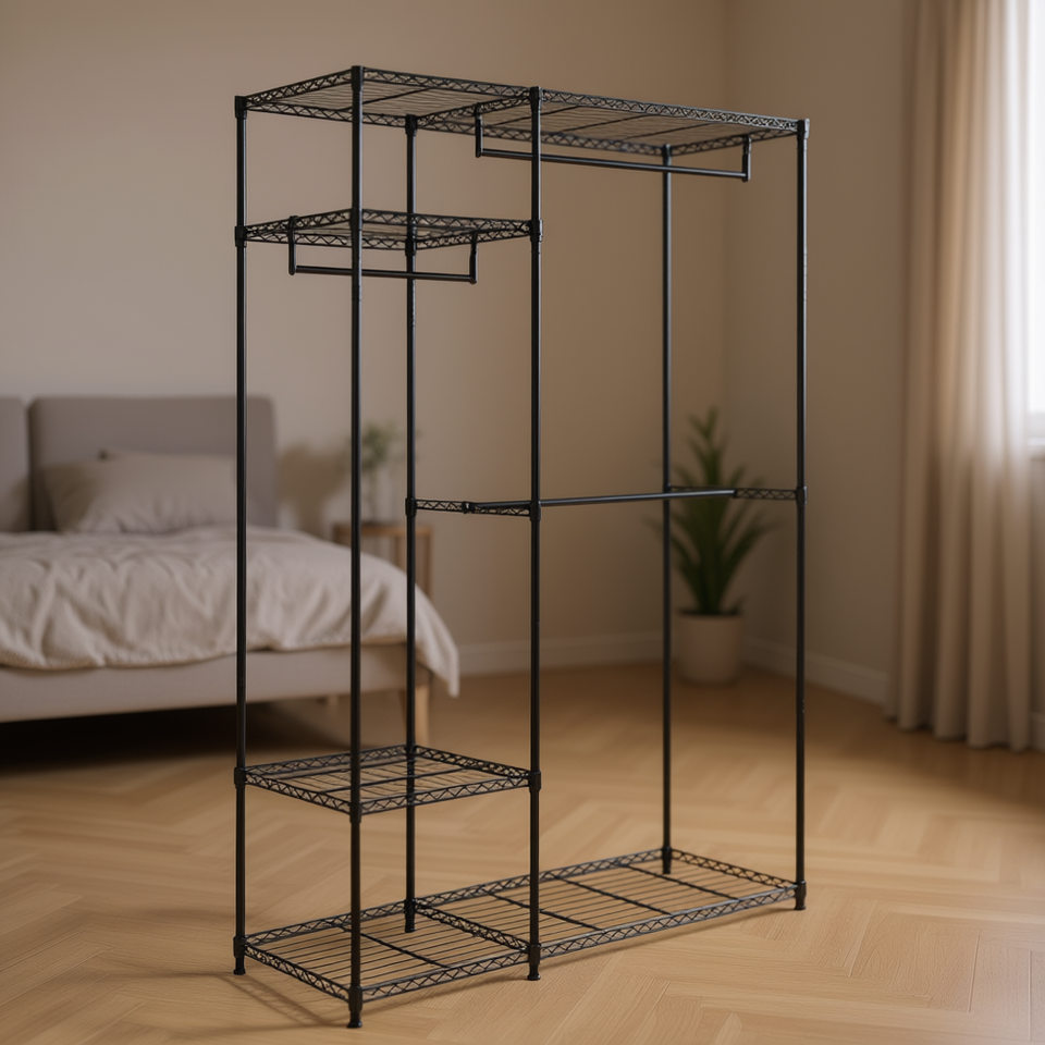 Organisateur de garde-robe en acier moderne et simple, 5 niveaux, support de rangement portable pour vêtements, type sur pied, design minimaliste noir