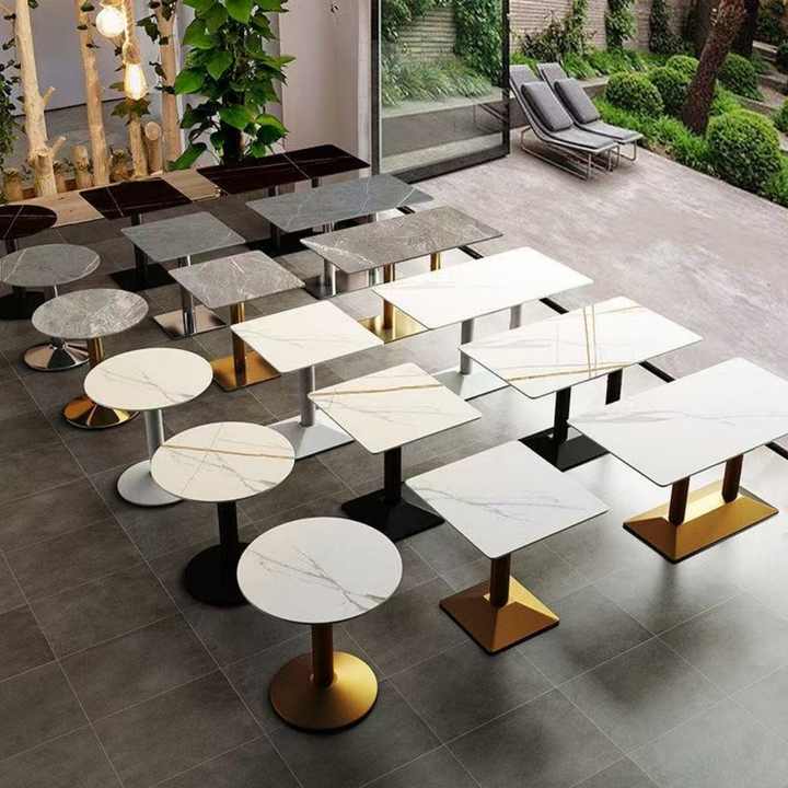 Meubles en bois modernes simples, pieds en métal, plateau en marbre, petite table ronde carrée, tables de bar de cuisine, tables de restaurant pour café