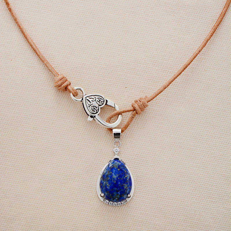 Collier simple rétro en lapis-lazuli, pendentif goutte d'eau, chaîne en corde, alliage de métal précieux, collier de luxe pour femmes, à porter tous les jours