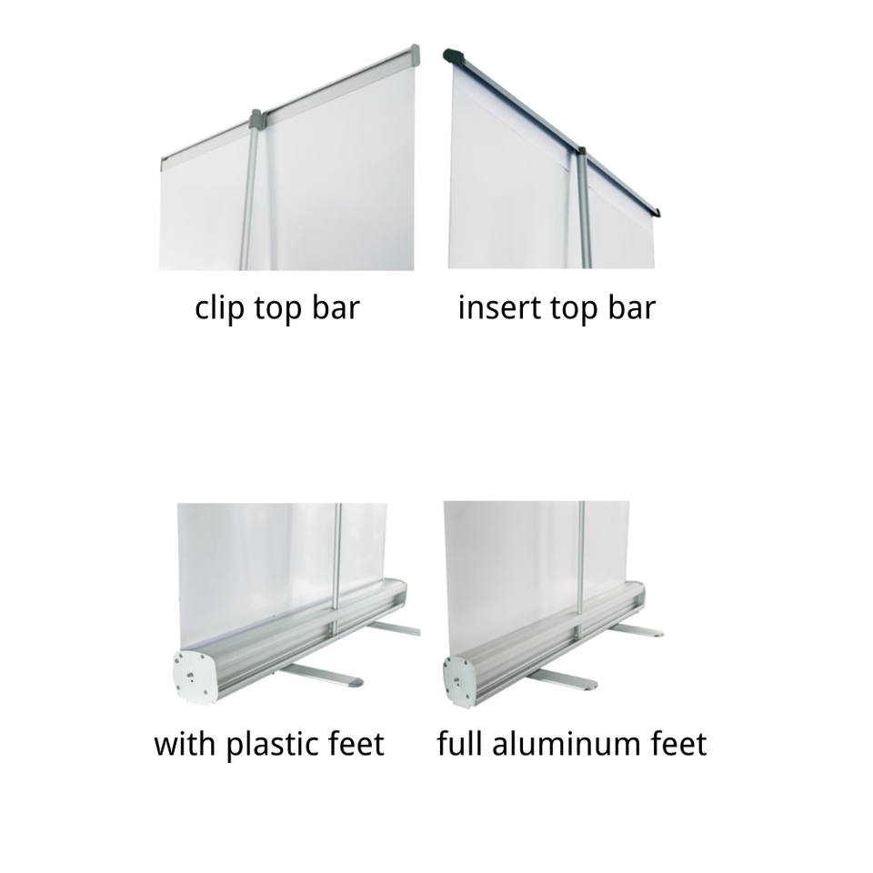 Support déroulable simple 85x200cm, prix économique avec options de pieds en aluminium ou en plastique pour un usage quotidien
