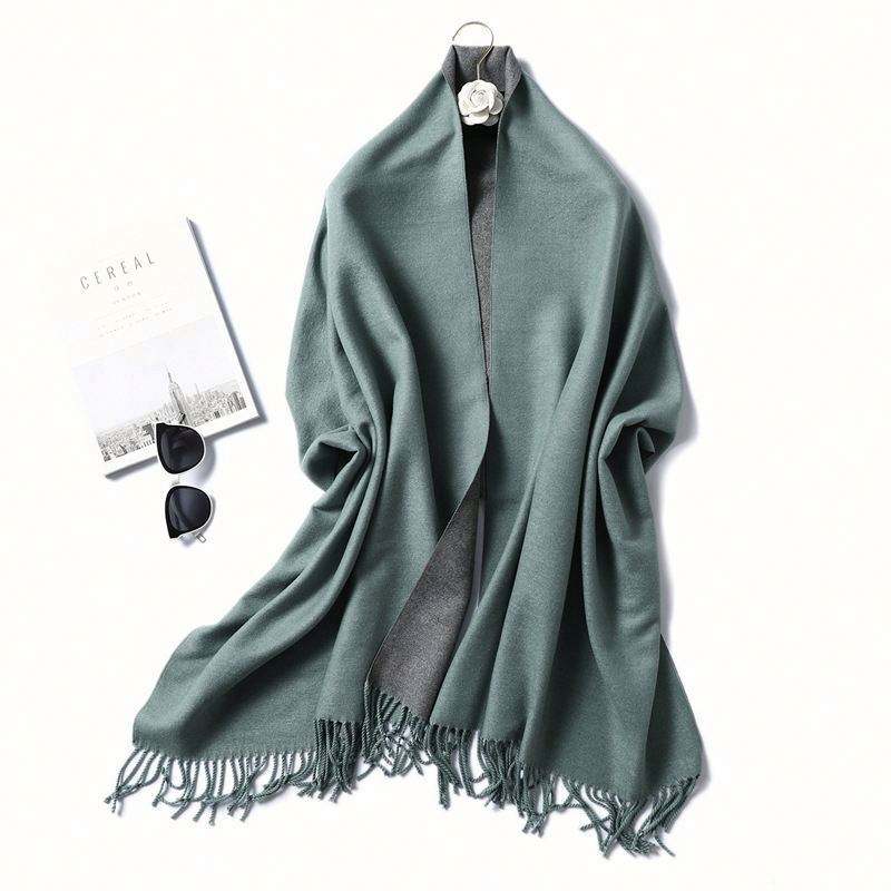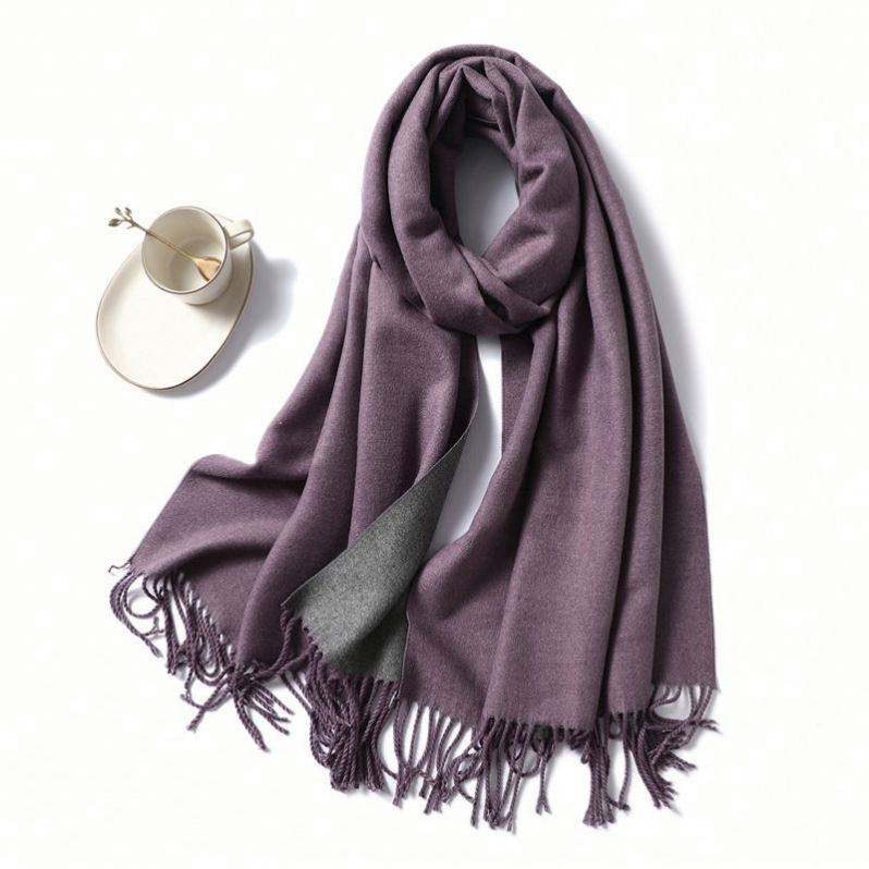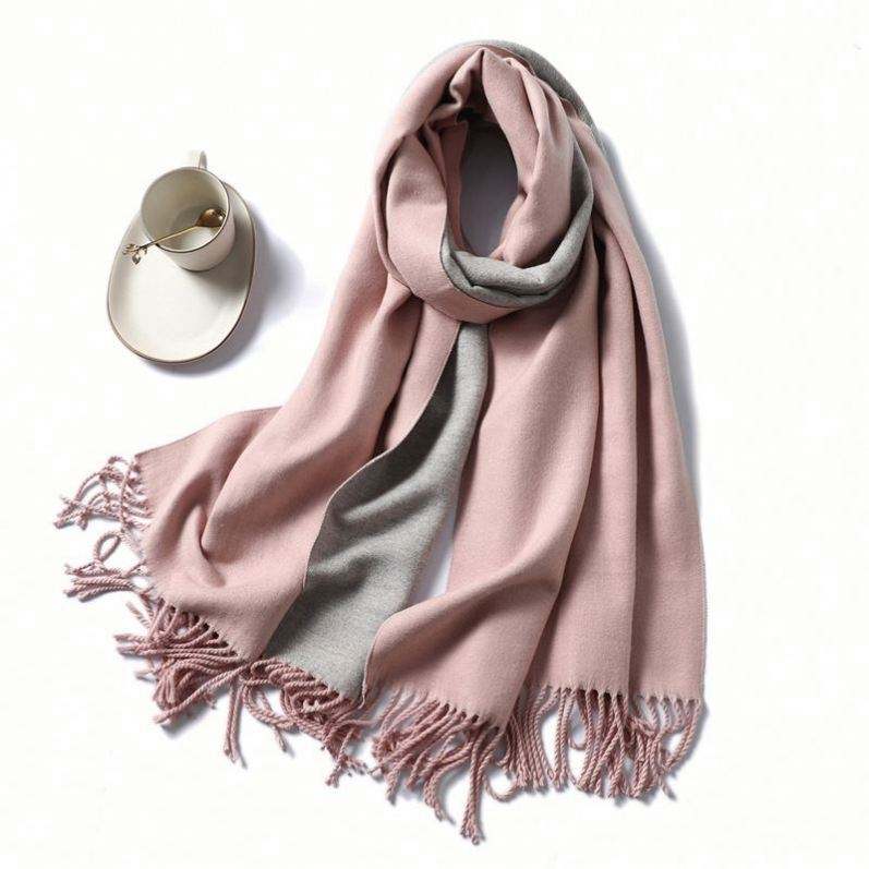 Châles longs en cachemire couleur unie pour femme, écharpe double face bicolore à pompons, épaisse et chaude pour l'hiver, idéale pour l'extérieur