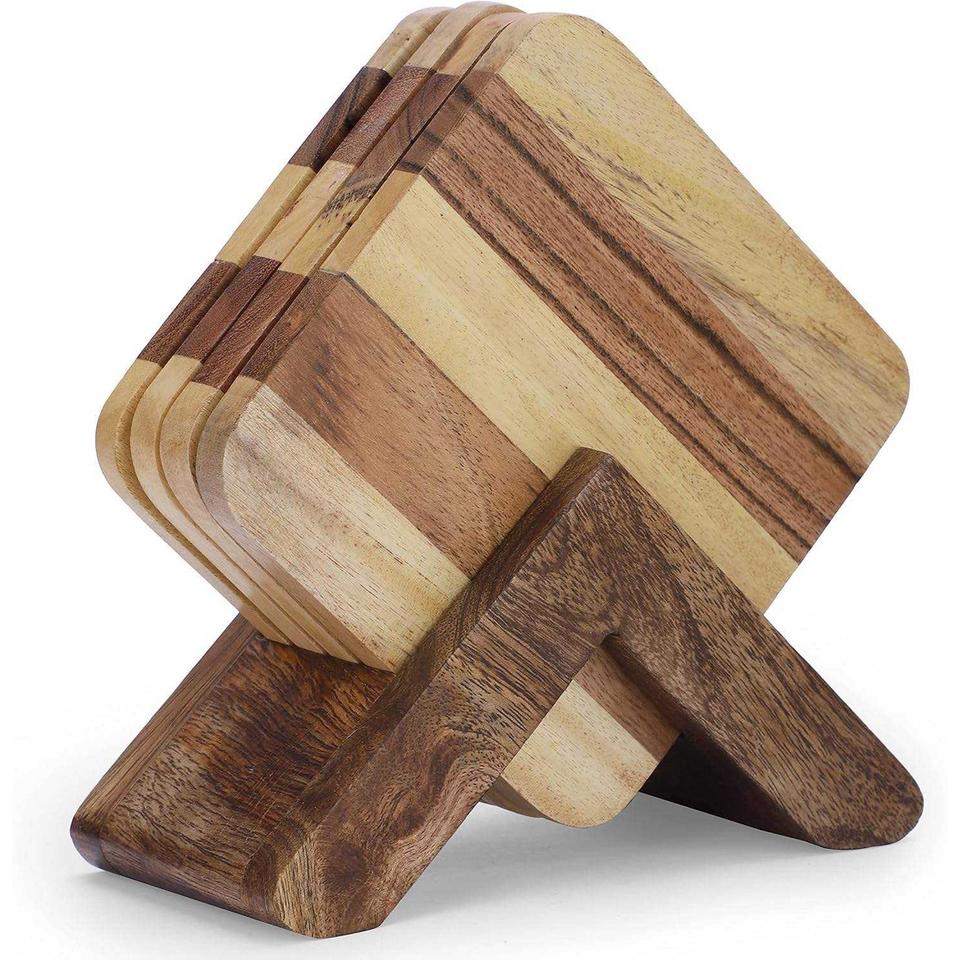 Ensemble de sous-verres carrés en bois simples avec support, sous-verres en bois de haute qualité pour table basse, cuisine, décoration de la maison
