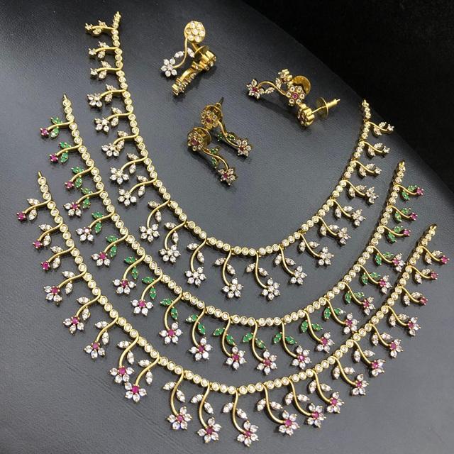 Conception exclusive polonaise antique de style simple avec des pierres CZ Look collier plaqué or ensemble avec boucles d'oreilles pour mariage pour les femmes