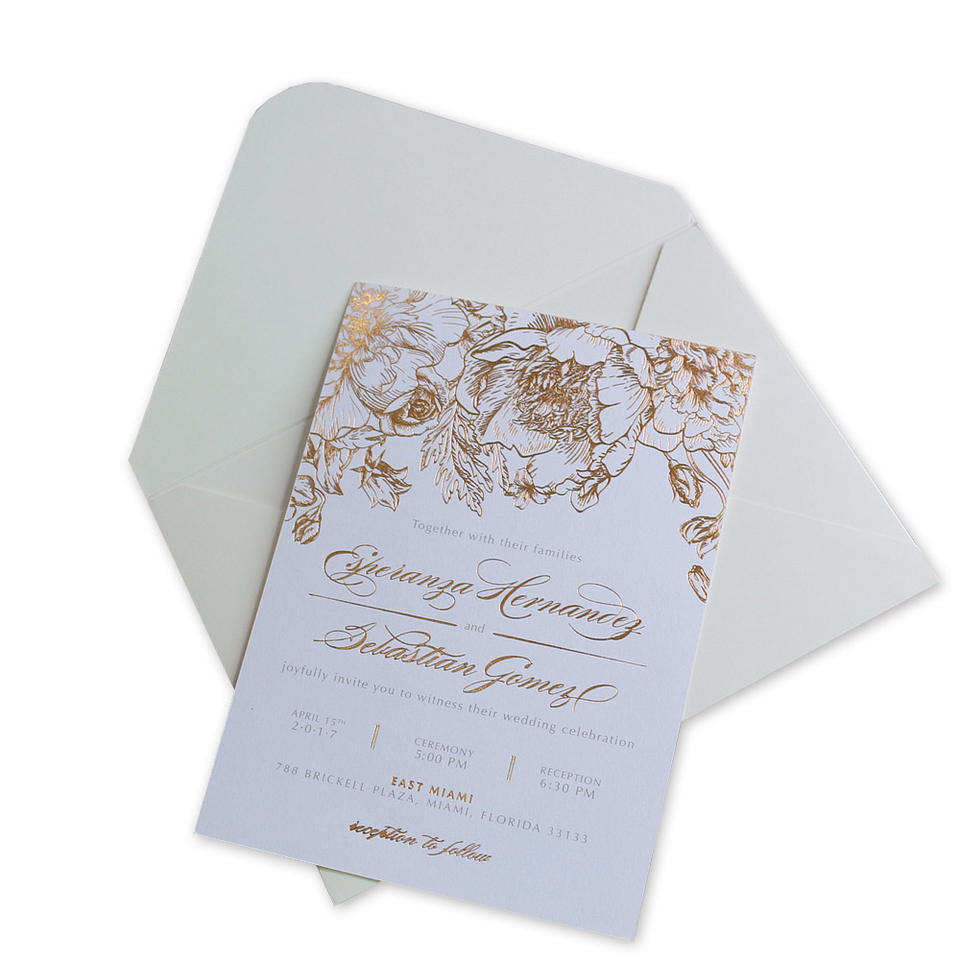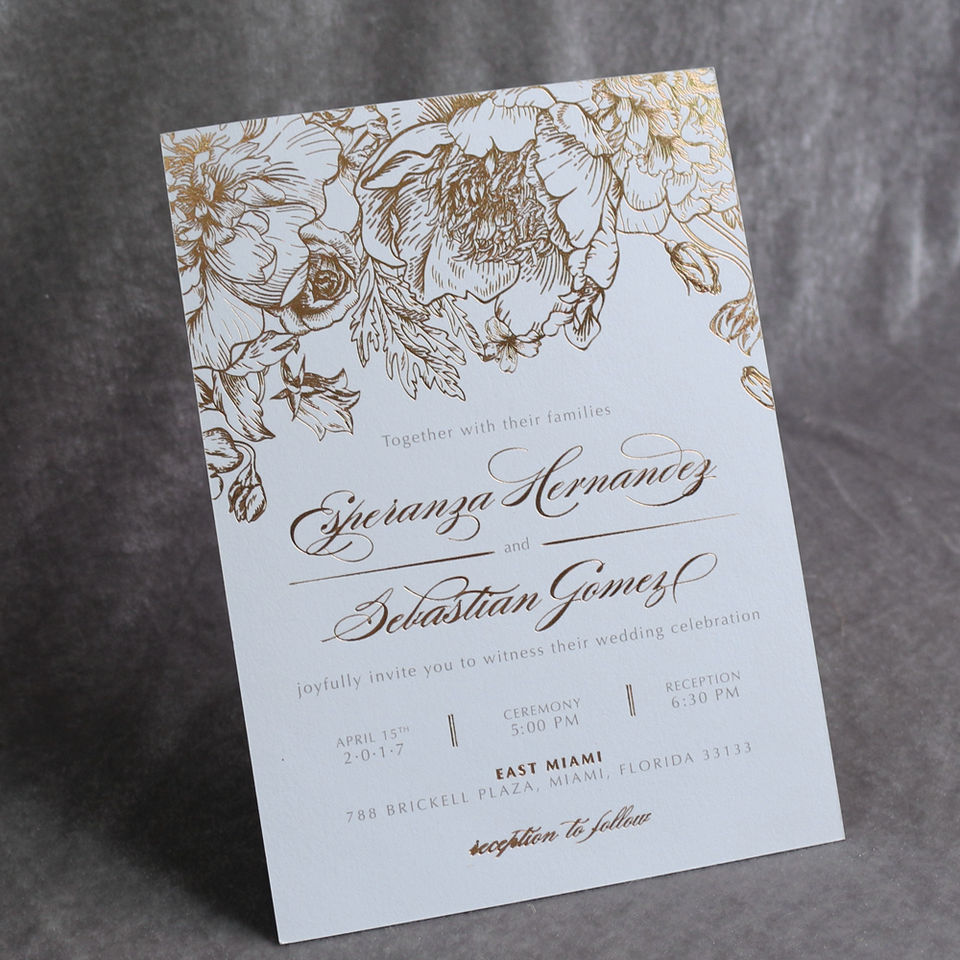 Modèle d'invitation de mariage en papier coton de style simple, rose doré floral, cartes d'invitation de mariage pour fête de mariage