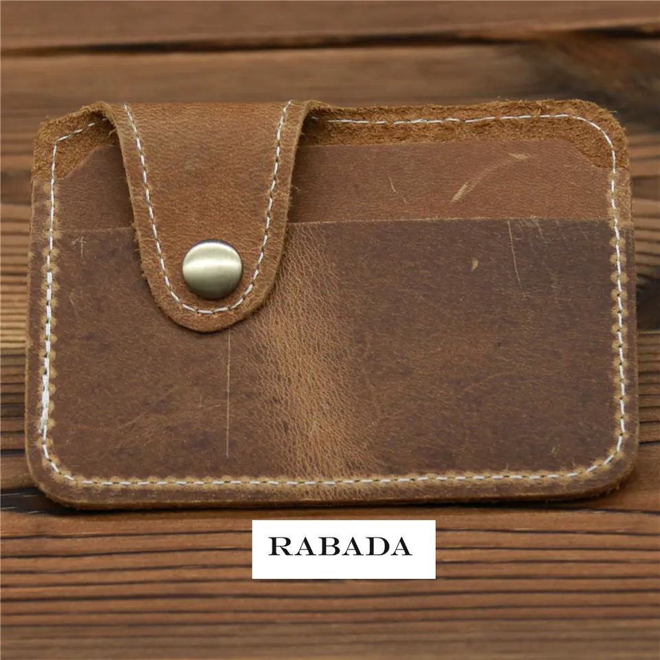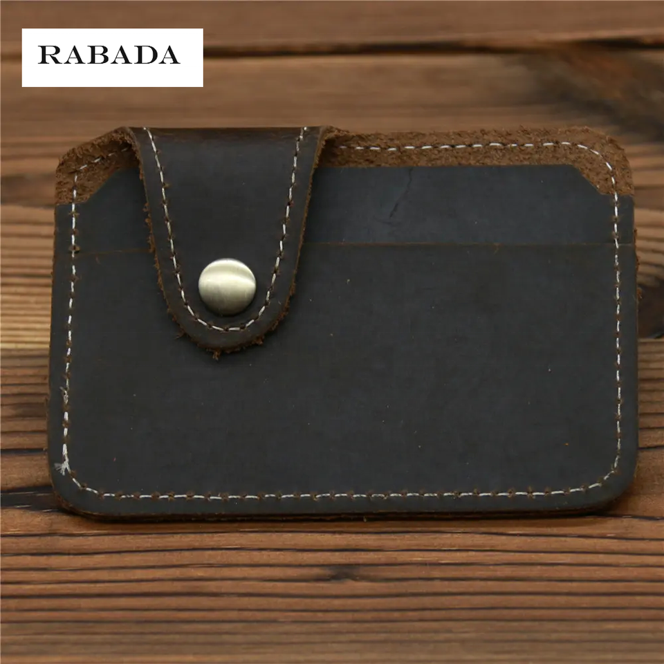 Portefeuille mince en cuir véritable minimaliste avec logo personnalisé de style simple Portefeuille Porte-cartes en cuir de cheval fou