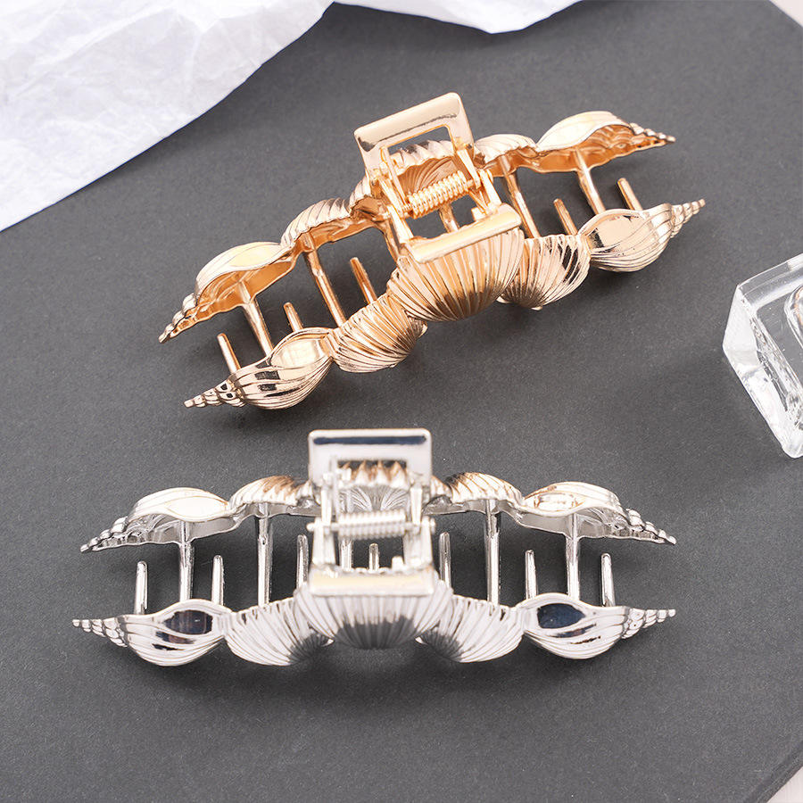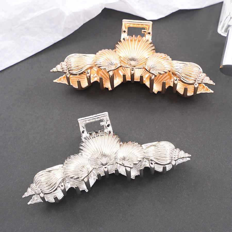 Pince à cheveux en métal style simple, motif étoile de mer et coquillage, 11 cm, grande taille rétro, unisexe, accessoires pour cheveux