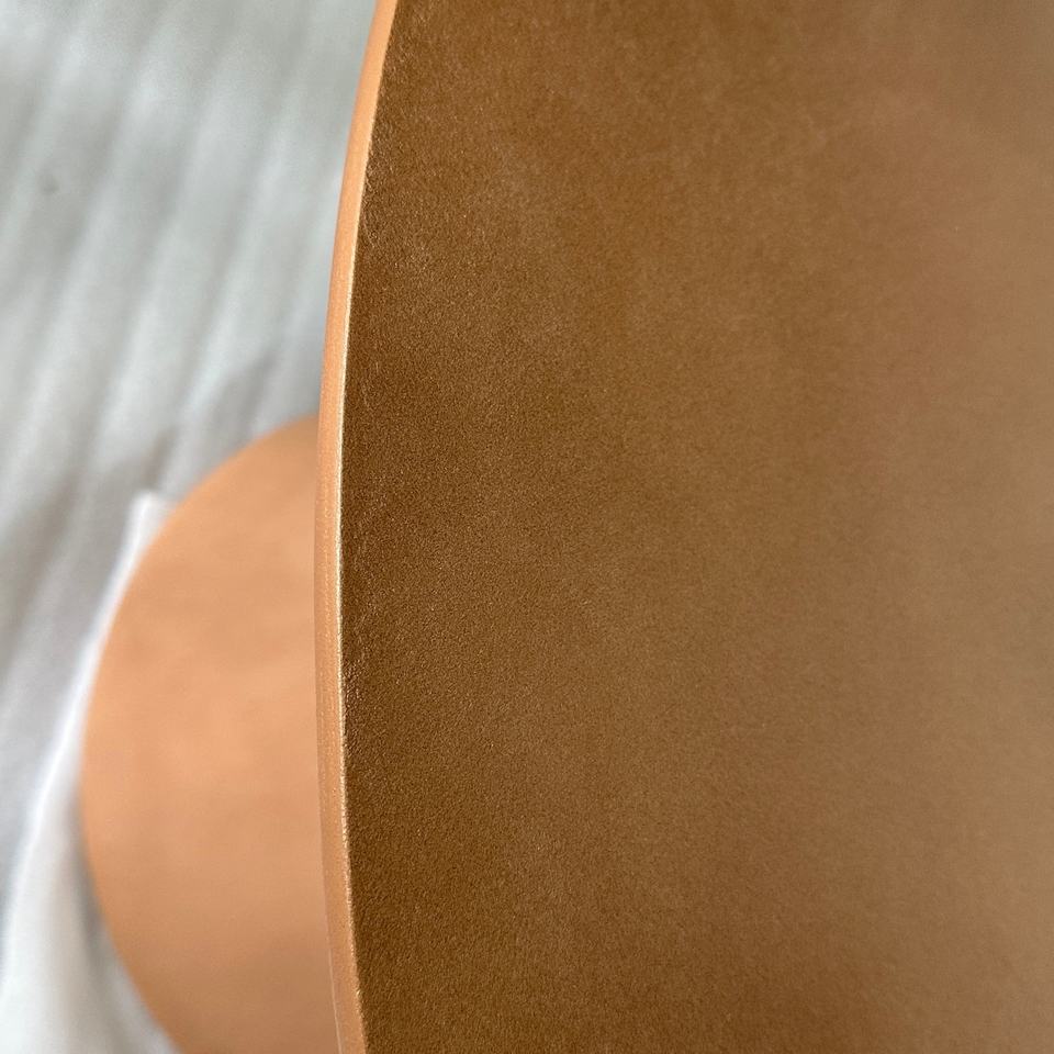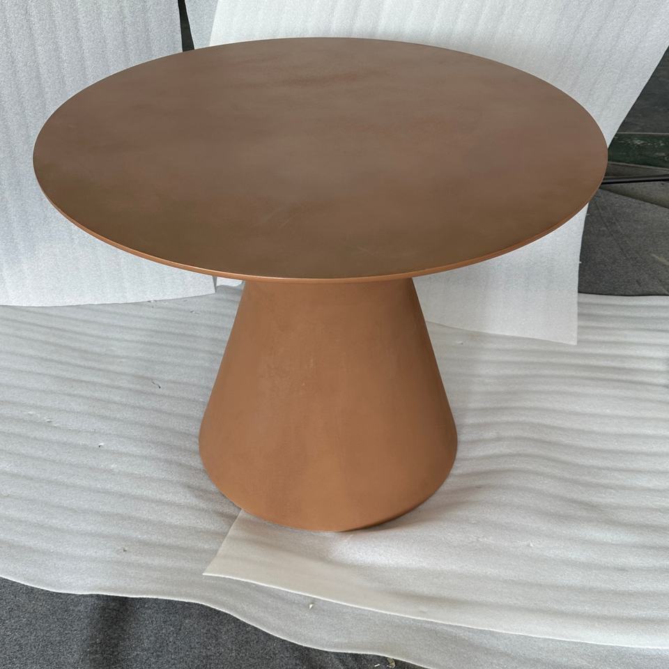 Tables de salle à manger rondes modernes de style simple, revêtement en béton lisse brun, cadre en bois, pour restaurant