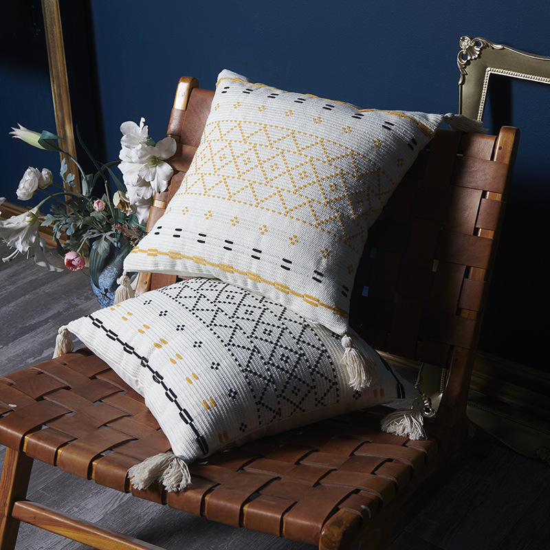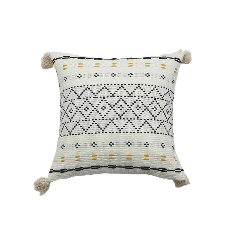 Style simple carré losange Jacquard coton toile gland taie d'oreiller tissé housse de coussin pour un usage domestique