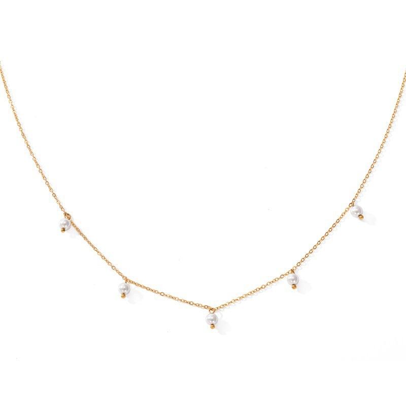 Collier ras du cou élégant et simple en acier inoxydable avec imitation perle pour femme, en forme de U, doré