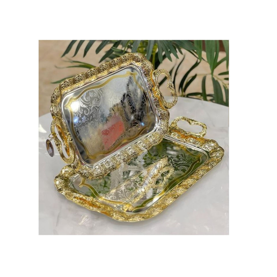 Plateau de service alimentaire simple et élégant décor d'hôtel plateau de restauration en acier inoxydable avec poignées à bas prix