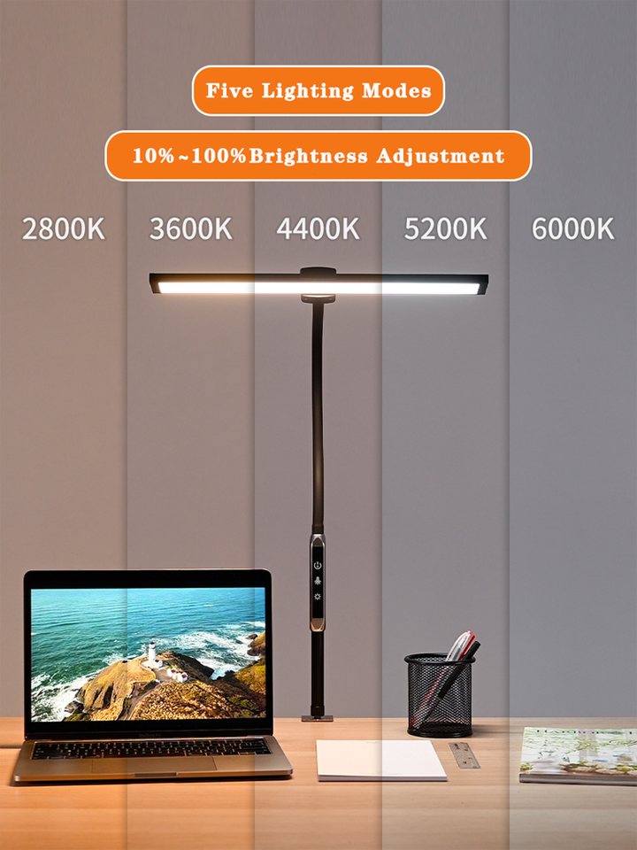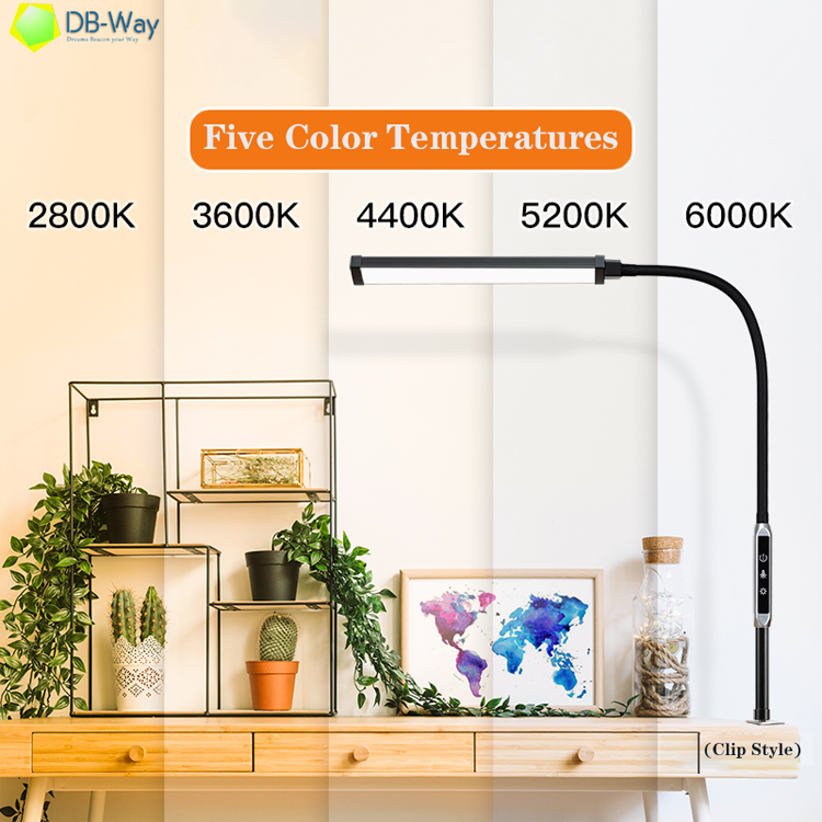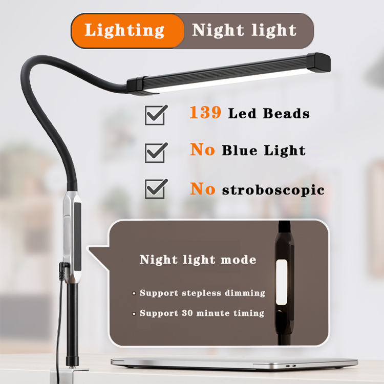Lampe de table flexible à col de cygne simple, réglable par pince/base, LED sans scintillement, télécommande tactile, veilleuse moderne