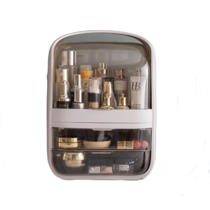 Boîte de rangement cosmétique simple et tendance 45L avec tiroirs, organiseur de maquillage de bureau, compartiments couverts, anti-poussière