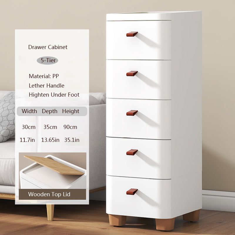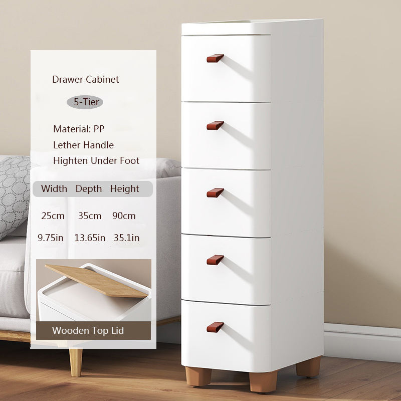 Commode de rangement simple en PP blanc à plusieurs niveaux, style japonais, avec 4 tiroirs, pour chambre à coucher