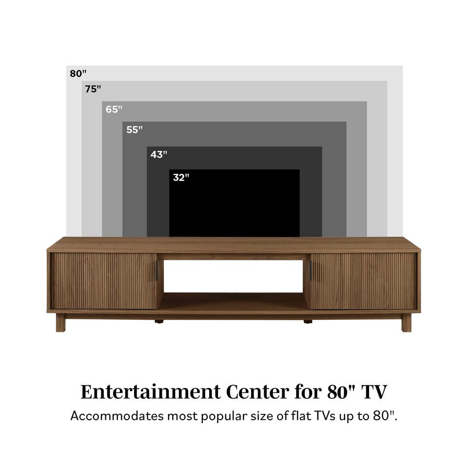 Simple Wooden TV Console Table, Luxury TV Stand Cabinet for Living Room, Modern Fluted-Door Low Stand for TVs up to 80 Inches