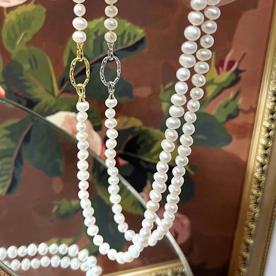 Collier simple et élégant en perles d'eau douce de 6-7 mm avec fermoir en argent S925, bijoux tendance et jeunesse