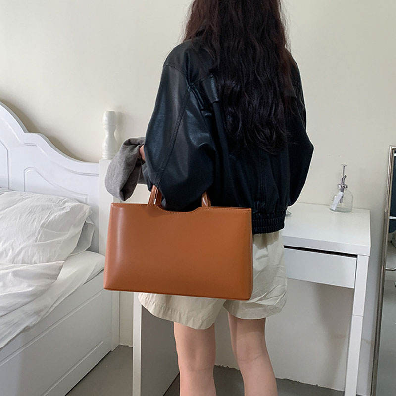 Sac fourre-tout simple et tendance, sac à main rectangulaire en cuir PU lisse, sac à main classique de couleur unie pour femmes